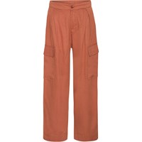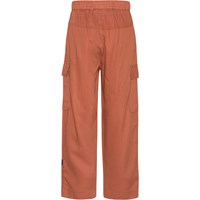 Anita is a pair of red/brown trousers in 100% viscose. They have front pockets and cargo pockets on the legs. Anita has elastic at the back of the waistband, and they have a button closure.