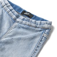 April is a pair of light grey jeggings in a jeans look with an elastic waist. The stretchy fabric ensures a comfortable fit and makes the jeggings easy to move around in.