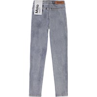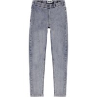 April is a pair of faded blue jeggings with an elastic waist. The stretchy fabric ensures a good, comfortable fit.