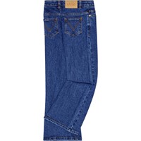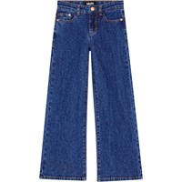 Classic denim blue jeans in organic cotton with a flared silhouette. The trousers have both front and back pockets as well as belt loops. The waist has button and zip closure and an internal adjustable elastic for a comfortable fit.
