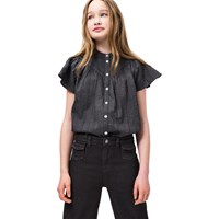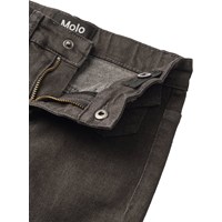 Grey-black jeans made of stretchable cotton with front pockets in a genuine 70s style. They have classic back pockets, an elegant flared shape, and a regular fit. The waist is adjustable with an internal elastic, so the trousers easy adapt and fit well on all children. Size 92-134 is equipped with a practical press stud, while size 140-176 has a classic jeans button.