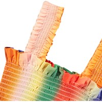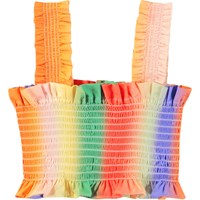 Rainbow-coloured crop top in organic cotton with smock effect, ruffle edge, and wide straps. Pair the top with matching trousers for a complete set.