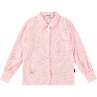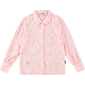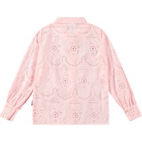 Dusty pink shirt in organic cotton with broderie anglaise. It has long sleeves with cuffs with two buttons, a collar and a button front closure. The shirt is in a loose fit and looks great with the skirt in the same fabric and colour.