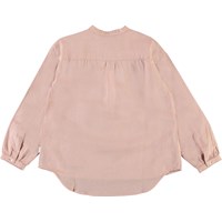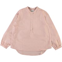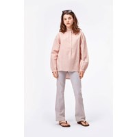 Rusla is a rose coloured, oversized shirt. The shirt has buttons at the collar and is slightly longer in the back.