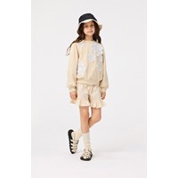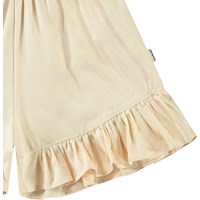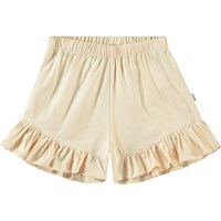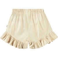 Beige shorts in organic cotton chambray. Loose fit with wide ruffle edges.