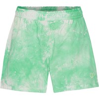 Air is a pair of shorts with green tie-dye and they are made of organic cotton. They have elastic at the waist and a small peace sign, shaped like a heart, printed on the thigh. Because Molo's tie-dye print is unique and made by hand, the products vary from style to style.