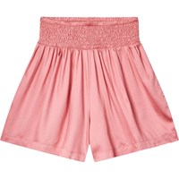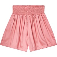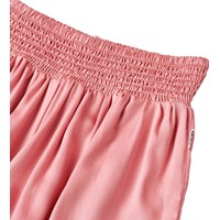 Soft rose viscose shorts. The shorts drape nicely and have a wide waistband sewn with a smocked effect, making them easy to put on and comfortable to wear.