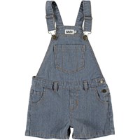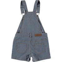 Alikami is a pair of dungaree shorts with thin blue and white stripes. They have adjustable straps and belt loops.