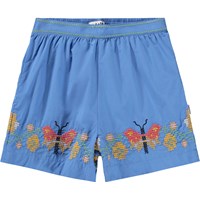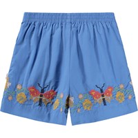 Blue shorts made of soft cotton with fine embroidery detail on the legs. The shorts have a loose fit and elastic at the back of the waist for extra comfort and flexibility. They are perfect for warm summer days.