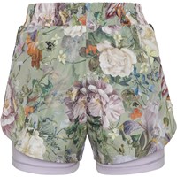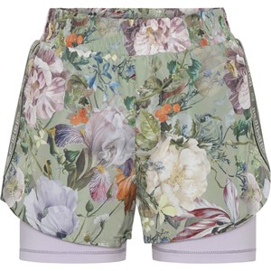 Omari is a pair of sports shorts in two layers, where the outer shorts are in light green with a floral print, and the inner shorts are in a light purple colour. The Omari shorts ensure comfort and flexibility so you can move without restriction. These shorts are part of Molo's new sports collection, which helps integrate sports and fashion. Wear Omari with one of Molo's sports tops for a complete, sporty look. Molo’s sports collection is created with a unique, high performance technology called HeiQ Smart Temp, which supports the body's own ability to cool down. The cool down function is activated when the body gets warm and sweaty, and then turns off when the body has cooled down. HeiQ Smart Temp ensures optimal comfort and performance. It has been independently tested to ensure that it is safe for the skin.