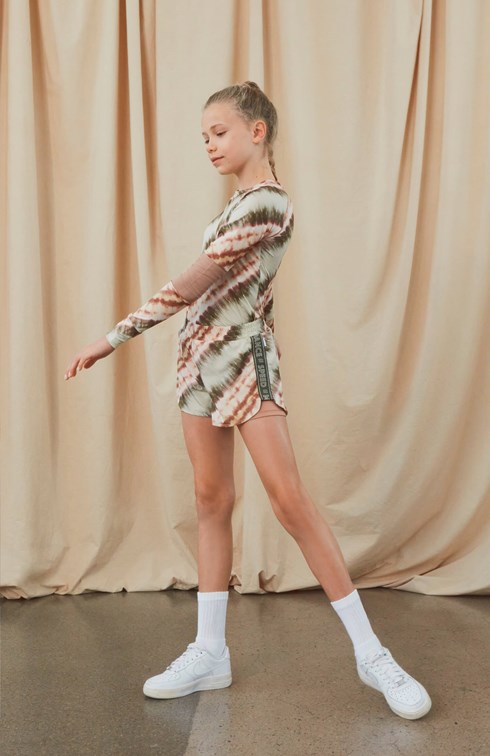 Omari is a pair of sports shorts in two layers, where the outer shorts are in a tie-dye print in green and beige, and the inner shorts are beige. The Omari shorts ensure comfort and flexibility so you can move without restriction. These shorts are part of Molo's new sports collection, which helps integrate sports and fashion. Wear Omari with one of Molo's sports tops for a complete, sporty look. Molo’s sports collection is created with a unique, high performance technology called HeiQ Smart Temp, which supports the body's own ability to cool down. The cool down function is activated when the body gets warm and sweaty, and then turns off when the body has cooled down. HeiQ Smart Temp ensures optimal comfort and performance. It has been independently tested to ensure that it is safe for the skin.