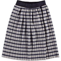 The Bailini skirt is one of Molo's favorites and is great for special occasions but also for everyday wear with a casual t-shirt. This skirt is in grey with dark blue stripes and glitter.