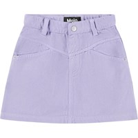 Light purple skirt made of a cotton and viscose blend with matching stitching. It has beautiful seams at the front, two side pocket and belt loops, as well as an adjustable waist.