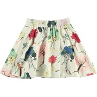 Barbera is a light coloured skirt with a print of happy, colourful trees. The skirt is full and has an elastic waist.