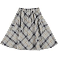 Becca is a grey cotton skirt with a plaid. The skirt has large patch pockets at the sides and a back zip.