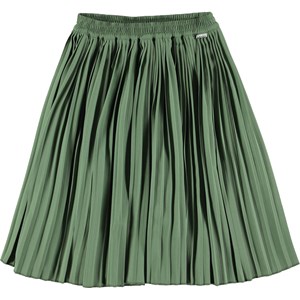 Green pleated midi skirt. It is in 100% polyester, which makes the pleats possible. The elastic at the waist makes it easy to pull on and off. The skirt is in a regular fit. It's perfect for parties but also cool enough for everyday wear.