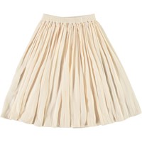 Becky is a light yellow pleated skirt with an elastic waist. It is light and airy and has a beautiful drape.