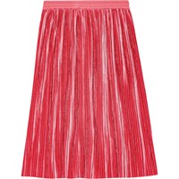 Pleated skirt in soft coral-coloured velvet. The skirt has an elastic waistband with a tie, allowing it to be worn both high-waisted and on the hips. The skirt falls to mid-shin length, and the heavy velvet makes it drape beautifully.