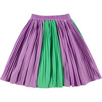 Bess is a pleated midi skirt in pastel blue, yellow and green with an elastic waist.