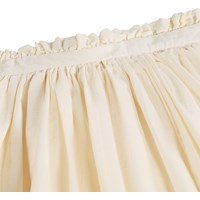 Off-white skirt made of soft, organic cotton poplin with a beautiful broderie anglaise details along the edge. The skirt is knee-length and has a waistband with a fine, small ruffle edge. It is fixed at the front and elastic at the back, as well as an invisible zip at the side, making it easy to put on and comfortable to wear.