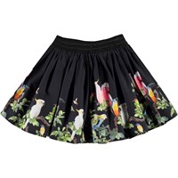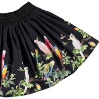 Brenda is a lightweight, black cotton skirt with a print of birds.