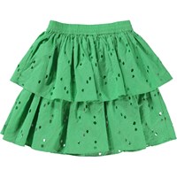 Brigitte is a green skirt in two layers with elastic at the waist. The skirt is in broderie anglaise and can be worn with the Ritza top for a complete look.