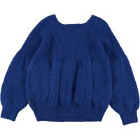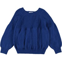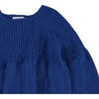 Gabriela is a blue knit top that has a pleated knit pattern on top. It has full sleeves as well as a full body.