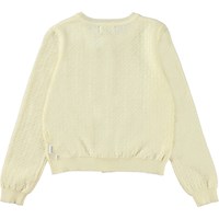 Gala is a lightweight, yellow cardigan in 100% cotton. Gala has rib knit at the neck, sleeves and bottom. It is knit in a subtle pattern that gives the cardigan a cool look. This style is perfect to wear buttoned up or open, over a dress.