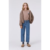 Grey brown, chenille rib knit cardigan in a soft alpaca/wool blend. It has a V-neck with rib and a button front closure. The long, full sleeves and the bottom have a rib edge, and the cardigan is in a regular fit. Wear it as an extra layer on cold days or over a dress for a cute look.