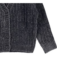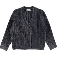 Gianna is Molo's new chenille knit cardigan in blue. It has a v-neck, a short fit and a button closure.