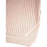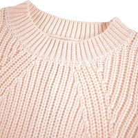 Rose long-sleeved knitted sweater made of soft organic cotton with a round neck. The sweater has a loose fit, is ribbed with a fine patern, has extra length at the back, and slits on the sides.