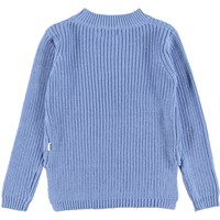 Gillis is a blue cotton knit with long sleeves. It has a round neck and a lovely knit pattern.