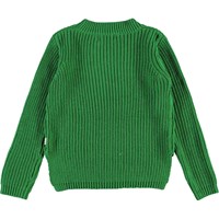 Gillis is a green cotton knit top with long sleeves. It has a round neck and a lovely knit pattern. The top is made of certified organic cotton.