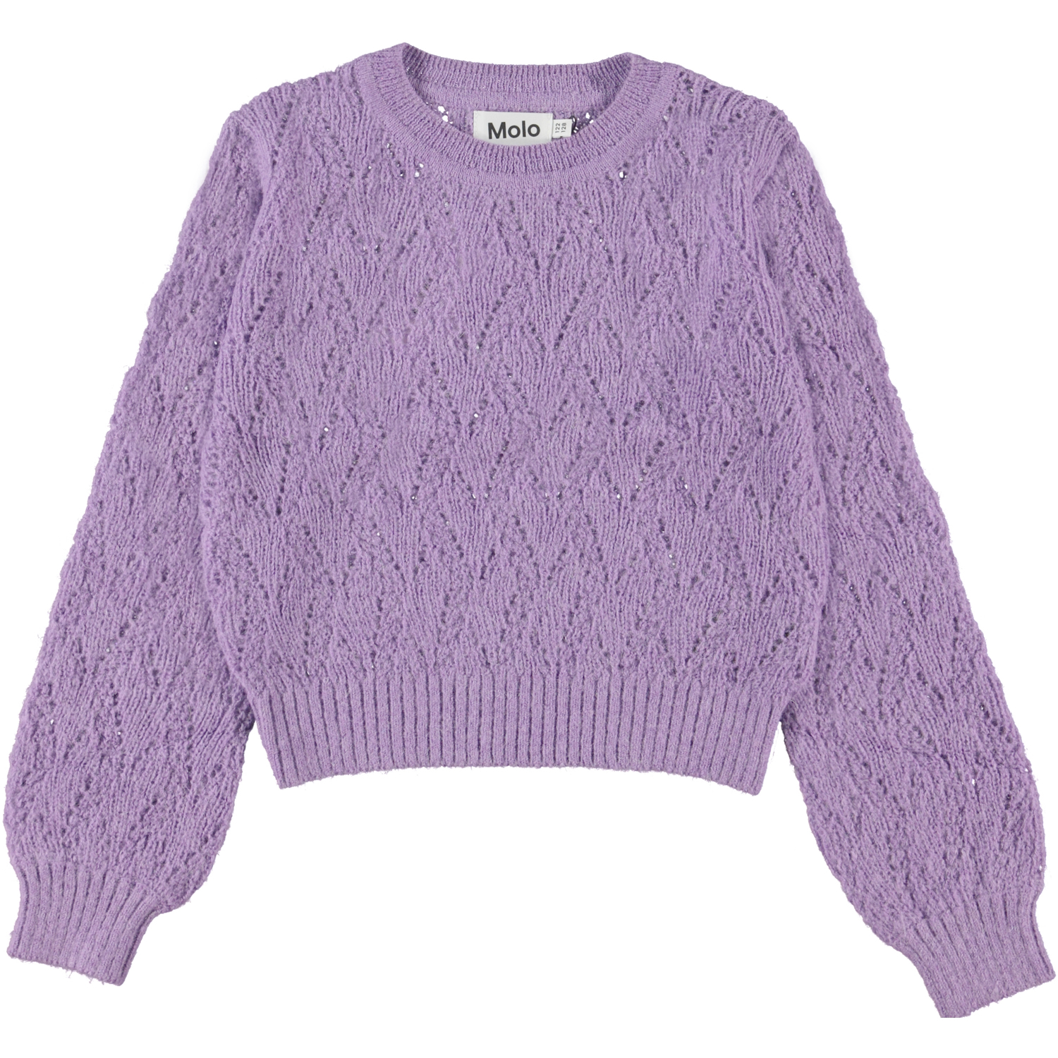 Ginger is a long sleeve, purple jumper in a thin knit quality. Ginger has a lovely hole pattern and has a rib knit at the neck, sleeves and bottom.