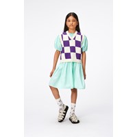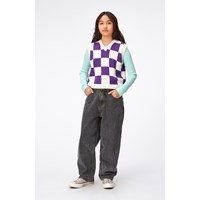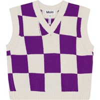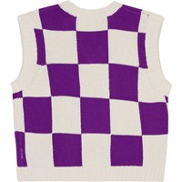 Off-white and purple cotton knit waistcoat in an oversized check pattern. It has a v-neck and white rib at the armhole, neck and bottom for a beautiful finish. The waistcoat is in a loose fit and is perfect to wear over a shirt.