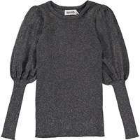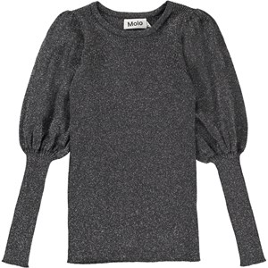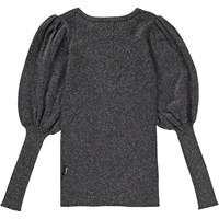 Glenda is a dark grey top with long sleeves that have a full puff effect on top. The top is in rib knit with a glitter thread that makes it very elegant.