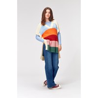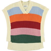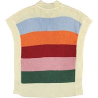 Gracelyn is a striped knit vest that is longer in the back and with slits at the sides.