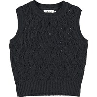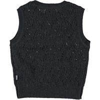 Black knit waistcoat- Perfect over dresses, shirts and blouses as an extra cool layer on any outfit. This waistcoat is in an alpaca/wool blend and is in a lovely hole pattern. It has a round neck with rib, a rib edge at the sleeves and bottom and is in a regular fit.