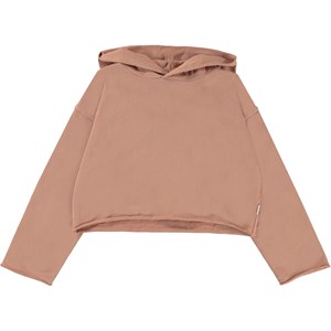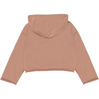 Maddy is a rose coloured cropped sweatshirt. The sweatshirt has a hood and is in a comfortable, wide fit.
