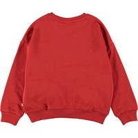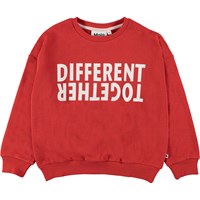 Maja is a red sweatshirt with the text 'Different Together' across the chest. Maja has dropped shoulders and rib at the neck, sleeves and bottom.