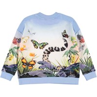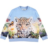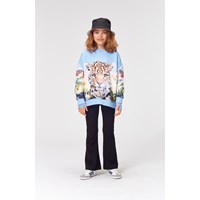 Mandy is a light blue sweatshirt with a leopard print and lots of butterflies. The sweatshirt is in an oversized fit.