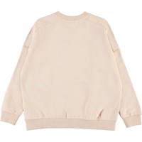 Mandy is a pink sweatshirt with a print and embroidery of dogs on the front. The sweatshirt is in an oversized fit.