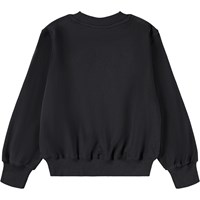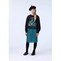 Black sweatshirt made of organic cotton with a round neck and ribbed edges. The sweatshirt has an oversized fit. On the front, there is an embroidered multicoloured sequin Christmas tree.