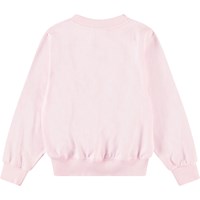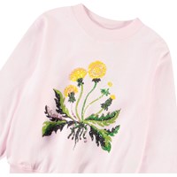 Pink sweatshirt in soft organic cotton with ribbed edges at the neck, sleeves, and bottom of the sweatshirt. The sweatshirt has a loose fit, with a colourful sequin embroidery on the front of yellow dandelion flowers.