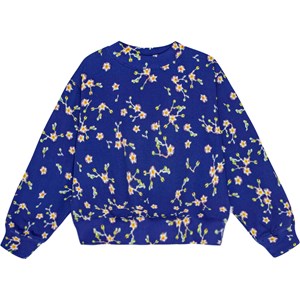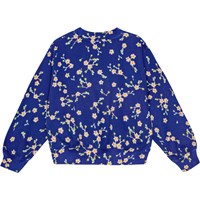 Blue sweatshirt in soft organic cotton with a brushed interior, making it soft and warm to wear. The sweatshirt has an oversized fit, round neckline, ribbed edges, and an all-over print of small white flowers depicting the night's constellation.