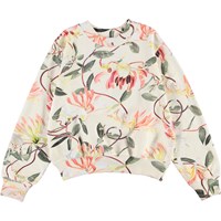 Marge is a light coloured sweatshirt in a floral print. It is in a short, feminine fit.