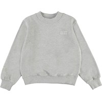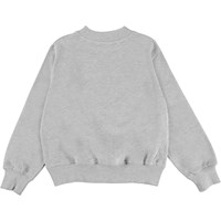 Marge is a grey sweatshirt in a short, feminine fit. Wear the sweatshirt with matching sweatpants.