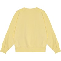Light yellow sweatshirt in organic cotton with a round neckline and ribbed trim at the neckline, hem, and sleeves. The sweatshirt has an oversized fit and on the front, there is a light blue sequin embroidery in the shape of a large bow, which adds an elegant touch to the blouse.
