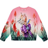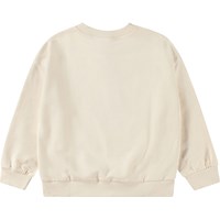 Off-white sweatshirt in organic cotton with a brushed inner face, making it soft and warm to wear. The sweatshirt has a loose fit, round neckline, ribbed edges, and a print on the front of various animals, all dressed up and ready to party.