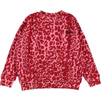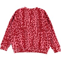 Maxi is a pink and red leopard sweatshirt. It has rib at the neck, sleeves and bottom.